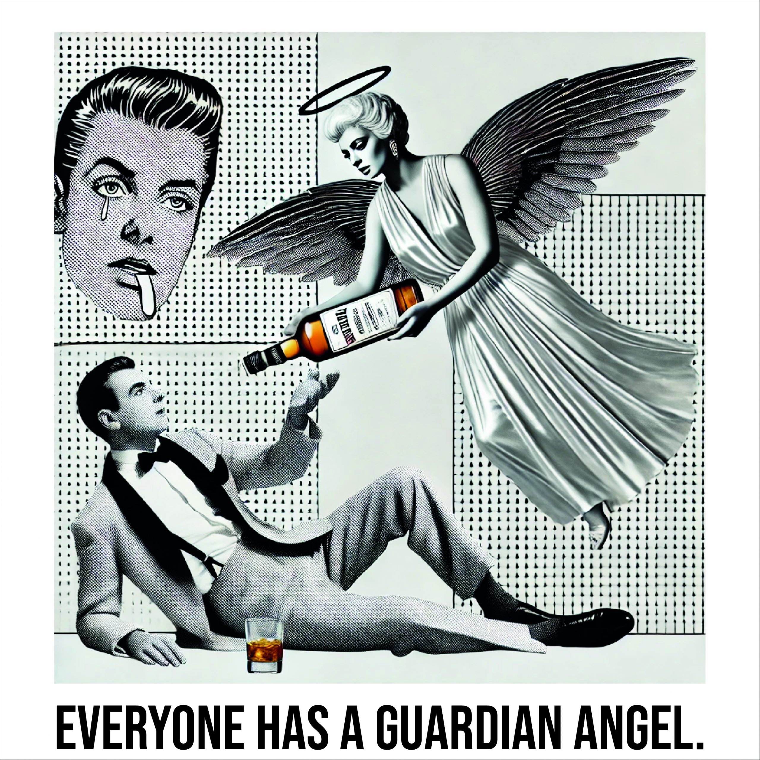 Name: EVERYONE HAS A GUARDIAN ANGEL. Year: 2024 Medium: Digital Series: Illustrated Punchlines Image: © Michiel Muyres. All rights reserved.